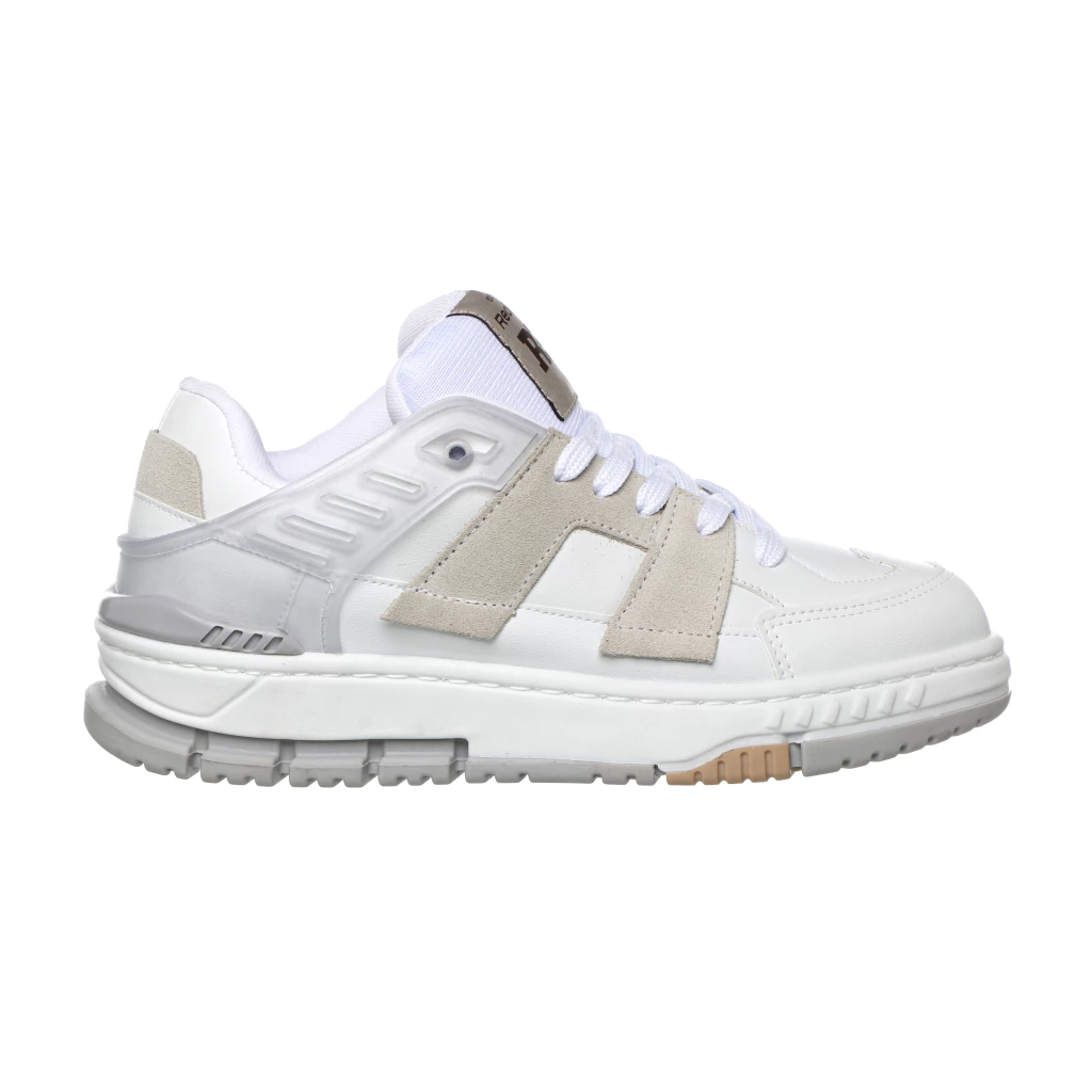 Design moderno com mistura de materiais: couro sintético, suede e detalhes estruturados.